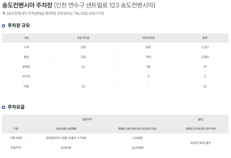 승용차 기준으로 5시간 이상 주차 시, 전일주차 요금인 6,000원, 화물차나 버스는 12,000원이 청구되니 참고하시고 관람하시는 데 시간 조율하시면 될 것 같습니다.